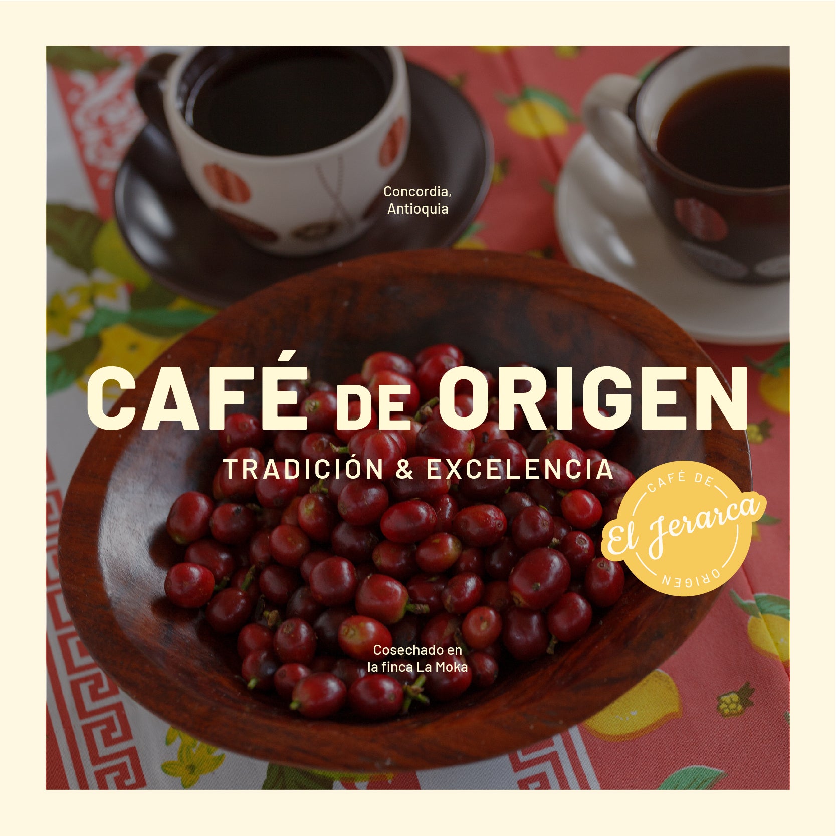 Originario de las fértiles montañas andinas, cultivado y cosechado manualmente en La Moka, finca ubicada en el Municipio de Concordia, Antioquia. Microlotes entre 1800 y 2045 metros sobre el nivel del mar, hacen de El Jerarca un café de altura con exuberante, fresco y delicado aroma, marcado por una acidez frutal fina, un cuerpo vibrante y cremoso, un aroma a panela y un sabor definido con notas florales y de durazno.